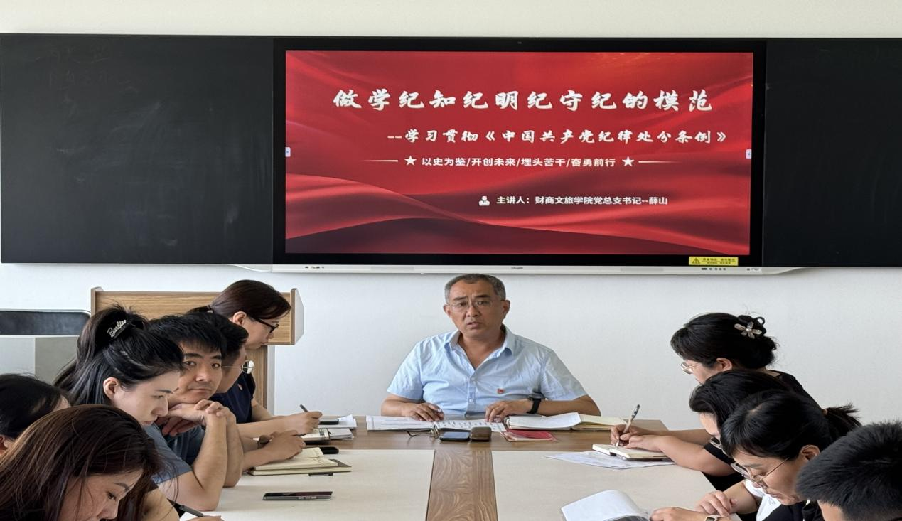 财商文旅公司党总支书记薛山通过对《中国共产党纪律处分条例》的历史修订情况、制定目的、工作原则、对党员的纪律处分种类及违反政治纪律的行为,进行了详细解读。并提出要加强对党员干部的教育、管理和监督,确保《中国共产党纪律处分条例》的各项规定得到有效落实。要建立健全监督机制,加强日常监督和专项检查,及时发现和纠正违反《中国共产党纪律处分条例》的行为。对于违反纪律的行为,要严肃查处,绝不姑息。同时,要充分发挥党内民主监督、群众监督等多种监督形式的作用,形成监督合力,让权力在阳光下运行。