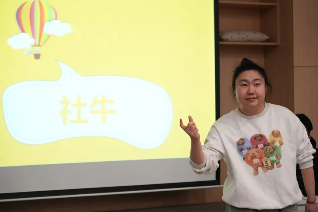 在第三环节的趣味赛中,各组参赛老师进行“你来比划我来猜”的比拼,此时的赛场激烈与欢乐并存,掌声此起彼伏。考题包括当前网络流行语以及员工工作日常的词汇等,“松弛感”、“抽象”、“学习通”等词语让参赛老师们熟悉又为难,比赛在欢声笑语中结束。