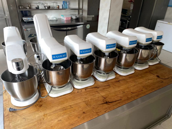 烘焙实训室面积约200平方米,可满足30名员工同时使用。内设备配置齐全,拥有多媒体教学设备、不锈钢柜式案板、烤箱、冷冻箱、冷藏柜、搅面机、奶油搅拌机等操作设备。
