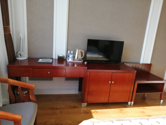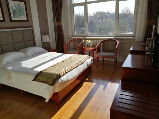 客房实训室面积约248平方米,可满足30名员工同时使用。实训设备包括:床、床头柜、电视柜、写字台、椅子、衣帽架、小茶几、沙发、行李柜、衣柜、电视机、落地灯、台灯、床头灯、热水器、空调、吹风机、毛巾架、厕纸架、马桶、垃圾桶、热水壶、床上备品、毛巾、浴巾、地巾、工作车、挂烫机、吸尘器、置物架、挂衣杆、晾衣架等。