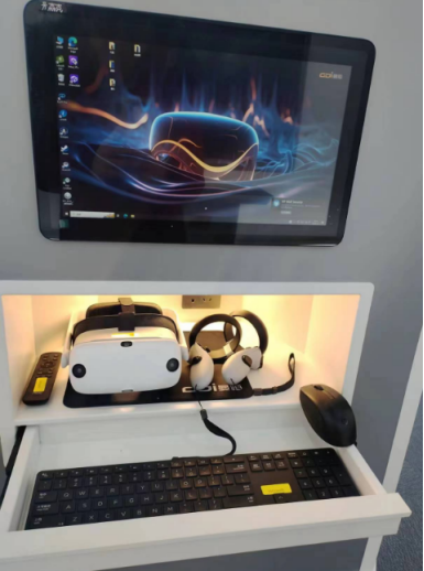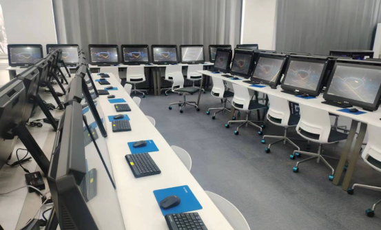 虚拟仿真实训室面积约260平方米,可满足72名员工同时使用。内设备配置齐全,拥有多媒体教学设备、台式计算机、新媒体运营平台、虚拟现实头戴显示设备、工作站、交换机、多人协同适配软件、VR教学资源管理平台、桌面VR交互一体机、虚拟现实创作软件等操作设备。