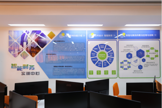 智慧财商虚拟仿真实训室面向大数据与会计等财经商贸类专业,针对专业实训教学过程中遇到的“实地教学难”“实训受制天气”“实训设备昂贵”等棘手问题,以“立足校情、服务区域、突出特色、共享资源”为原则,围绕大数据、人工智能、云计算等背景财务人才转型定位与能力要求,构建虚拟仿真实践环境,把真实企业搬进校园,项目导向、任务驱动,开展理实一体实践教学,提升员工岗位综合能力;同时开展校企合作、第二课堂、举办团队培训、1+X证书考试,具备承办会计技能等职业技能大赛的能力。