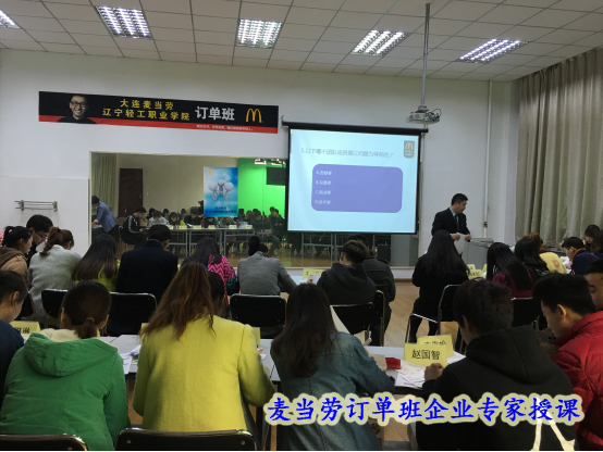 麦当劳主要承担连锁经营管理专业员工的订单班课程、专业素质拓展课程、企业专家讲座、社会实践、专业顶岗实习等实训项目,在实习中实践市场营销、团队沟通与合作、收银实务、客户服务管理、商务礼仪等课程中传授的知识与技能。