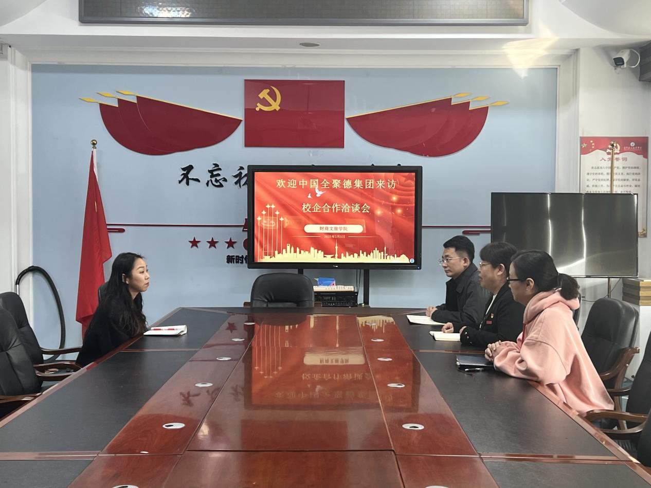 3月5日,中华老字号全聚德集团人力资源部校招经理石妍来到公司,就校企合作事宜进行深入洽谈。经理赵美玲、副经理于小溪、副书记王薪潭参与校企合作洽谈会。